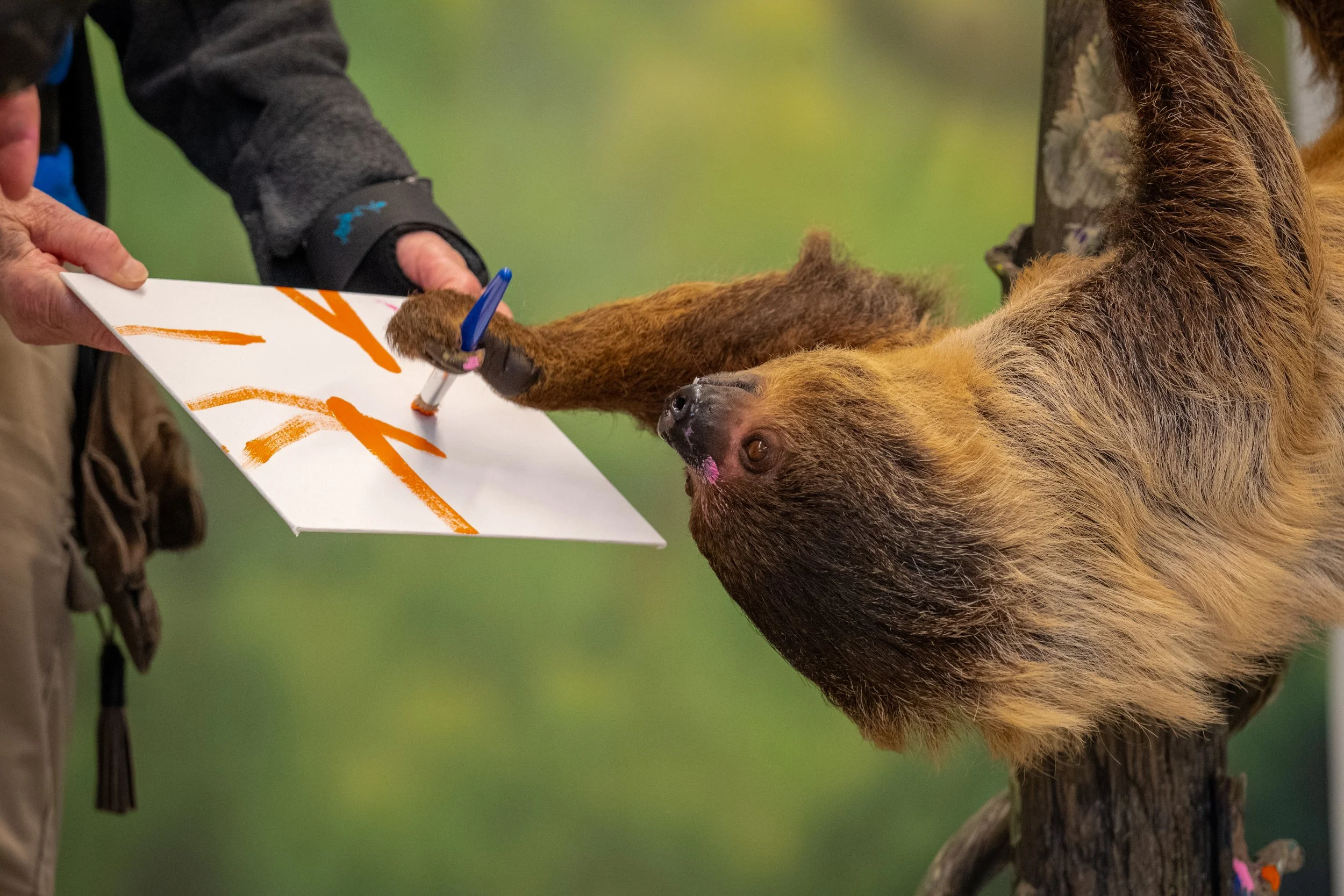 They met Valentino the sloth, watched him paint pictures using colors they chose, and explored the aviary together as a family. Their daughters laughed, pointed, and took in every new experience with wonder. Even a moment when their youngest daughter was unexpectedly pooped on by a lorikeet became part of the story, something that later turned into laughter and a memory they now cherish.